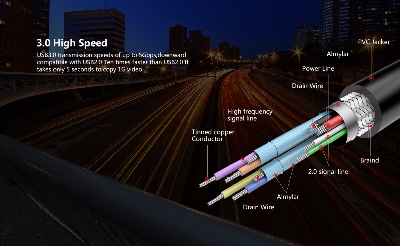 ● 3.Double-shielded, twisted-pair data wiring minimizes cross talk for error free SuperSpeed data transfer rates