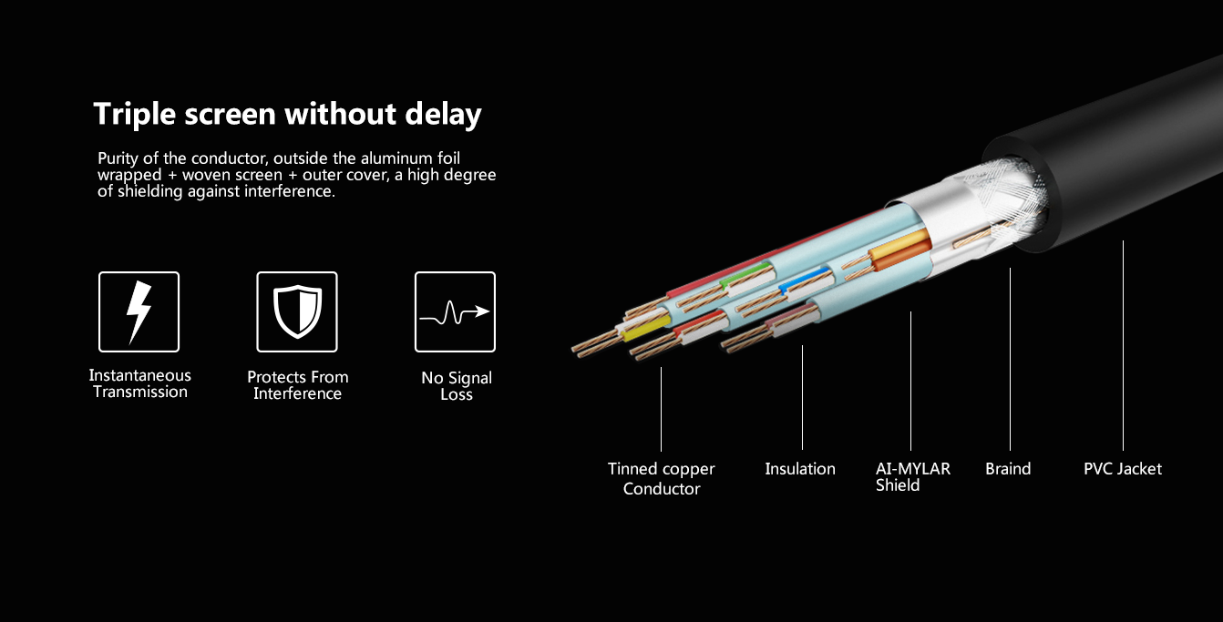 • 支持4K、3D 音頻同步 兼容性強 超細柔軟