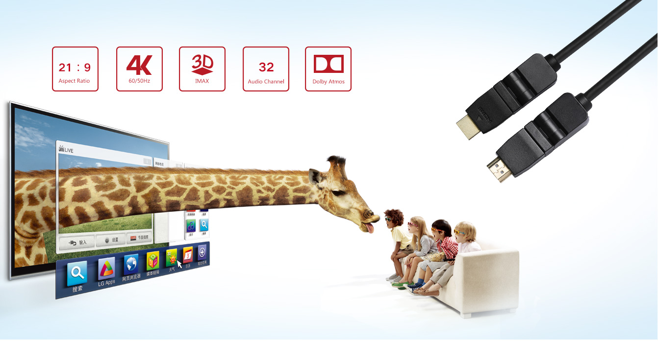 • 05 . FT-6025 180°翻轉(zhuǎn)頭HDMI線 高清線1.4版 3D數(shù)據(jù)線 4k電腦電視連接線